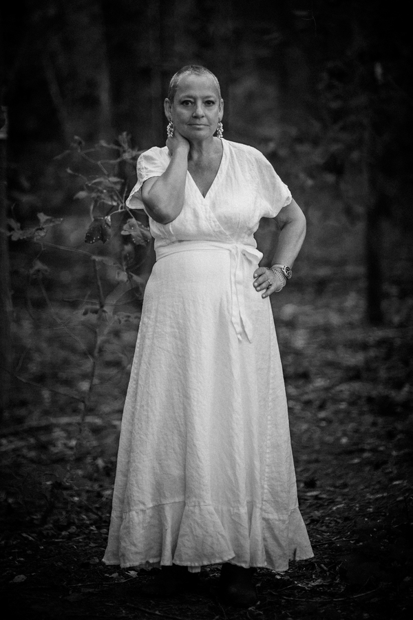 "This is the Closet Case Elodie wrap dress in “bleached” signature finish linen with an added flounce. I made this dress especially for this photo shoot-which documents my ending breast cancer treatment. My dear friend Richard Israel took the pictures."