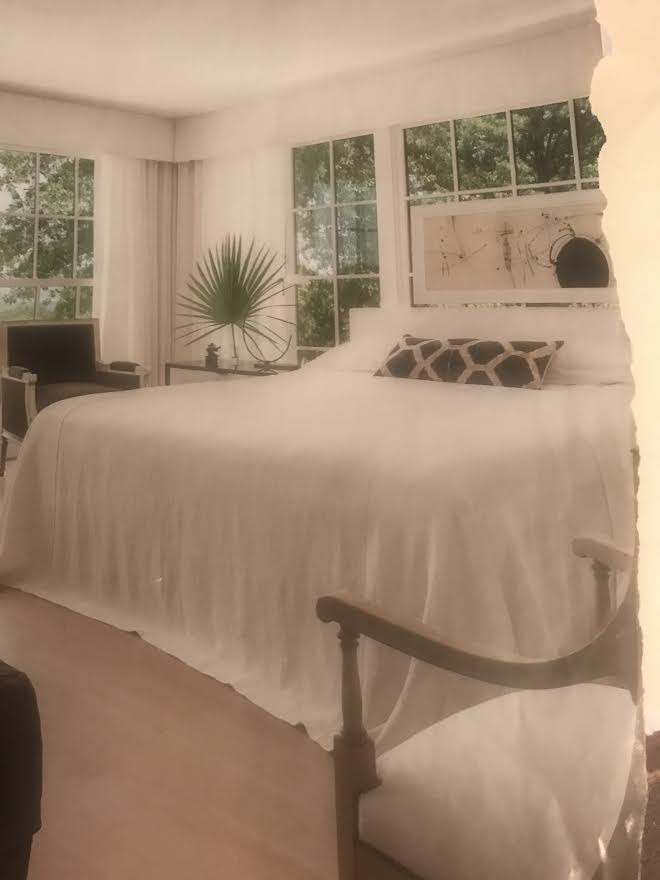 "IL019 Pristine linen for drapery , cornice and throw-style bedspread."
