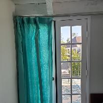 "I finally have my little beach cottage and wanted the room to feel like a summer breeze was blowing through it. The walls were painted a light blue hue with white woodwork trim so the curtains needed to add that happy pop of color yet still be serene."