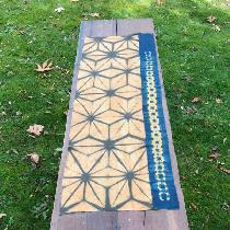 "ILO19 linen shibori tablerunner in hemp leaf pattern dyed with iron, pomegranate, and indigo"