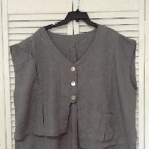 "Self drafted pattern in 100% printed linen. It is a wrap jacket with asymmetrical label on one side, side vents."