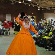 "I made this throwback Tampa Bay Buccaneers-inspired Elizabethan set for an SCA garb challenge. The smock, coif, and corset are made with 5.3oz bleached white, and the jacket and skirt are the 5.3oz flame orange! Drafted and sewn entirely by me."