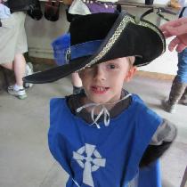 "Medieval page boy- fully lined page tunic with Celtic cross appliqué on the front, contrasting lined cape. "