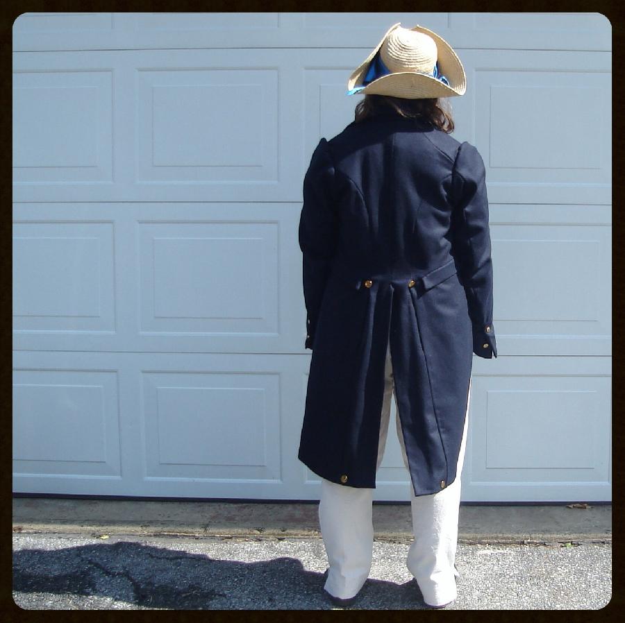 "My daughter has just begun her first post as Captain of the Friendship Goodwill at the Michigan Maritime Museum. This is her Navy Woolen Tailcoat made from Men's Regency Tailcoat #121 from Laughing Moon Mercantile, "