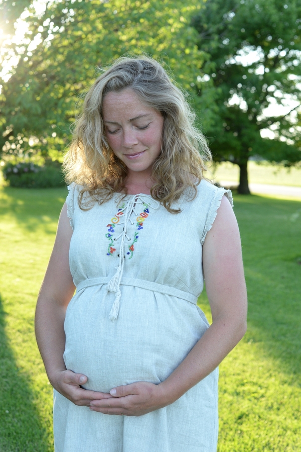 "This is a sleeveless tank dress with bead work and lace up neckline. The dress is so flowy and comfortable! My model was 8 month pregnant at the time and took the dress for her own because she loved it so much."