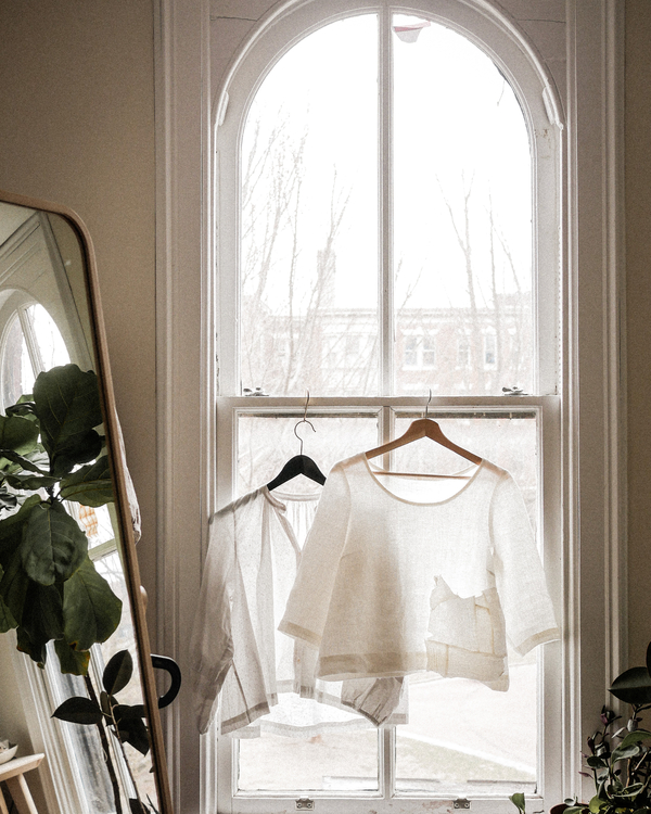 "The Laurence Top is a sewing pattern I created for a basic top that goes with everything. I sewed this one with the IL019 Bleached 100% linen, for the ultimate wardrobe staple of a clean, white linen top."