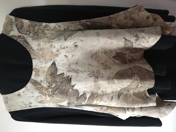 "The square-shaped vest drapes softly from the shoulders with an accent button closure on the sides. The sumac botanical print on the beautiful unlined linen garment makes for a great accessory for your wardrobe. The pattern is a Cutting Lines Design."