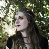 Daisy, Red Linen Medieval Dress with White Linen Veil