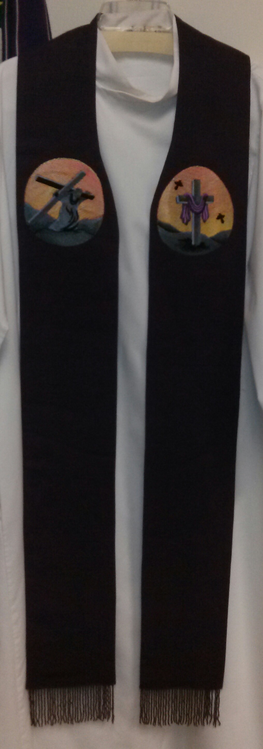 "This Clergy stole for Easter was sewn with the Darkest purple heavyweight linen"