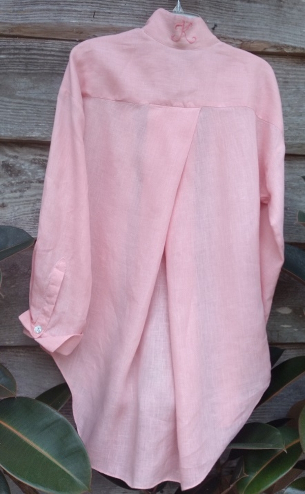"Collar to be worn up, or down, as shown on original pattern illustration. Sleeve cuff folded up with button on seam attaching to sleeve. Can be pushed up or rolled. Fits over large watches."