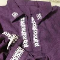 Navy Renaissance shirt, with red and white Celtic knot work on sleeves and and collar. Made by J...