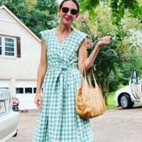 Combo hack between Noor and Rhea dress patterns. Changes: changed ties to match fabric, altered...