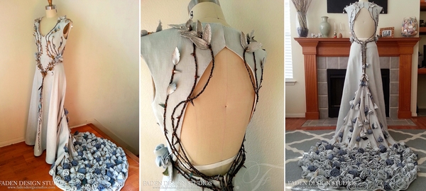 "Margarey Tyrell- Game Of Thrones- linen dress with over 300 hand rolled roses, leather, velvet, glass beads, and hand embroidered detailing. fadendesignstudios.com/contact"