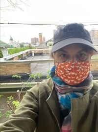 "Beautiful olive linen backdrop to surprise inside lining (Alexander Henry). Good for walking neighborhood over t-shirt. Appreciate fabric-store!"